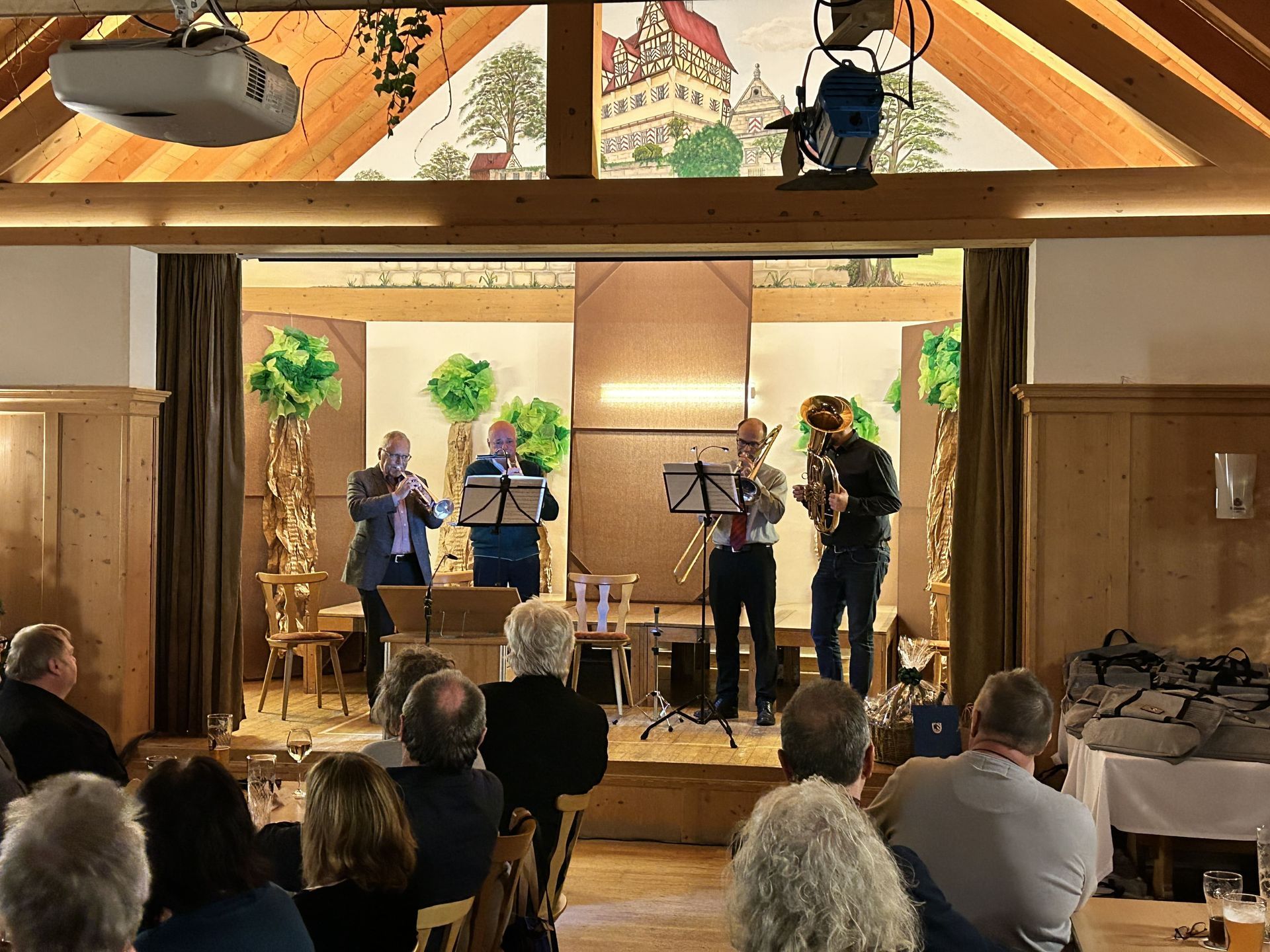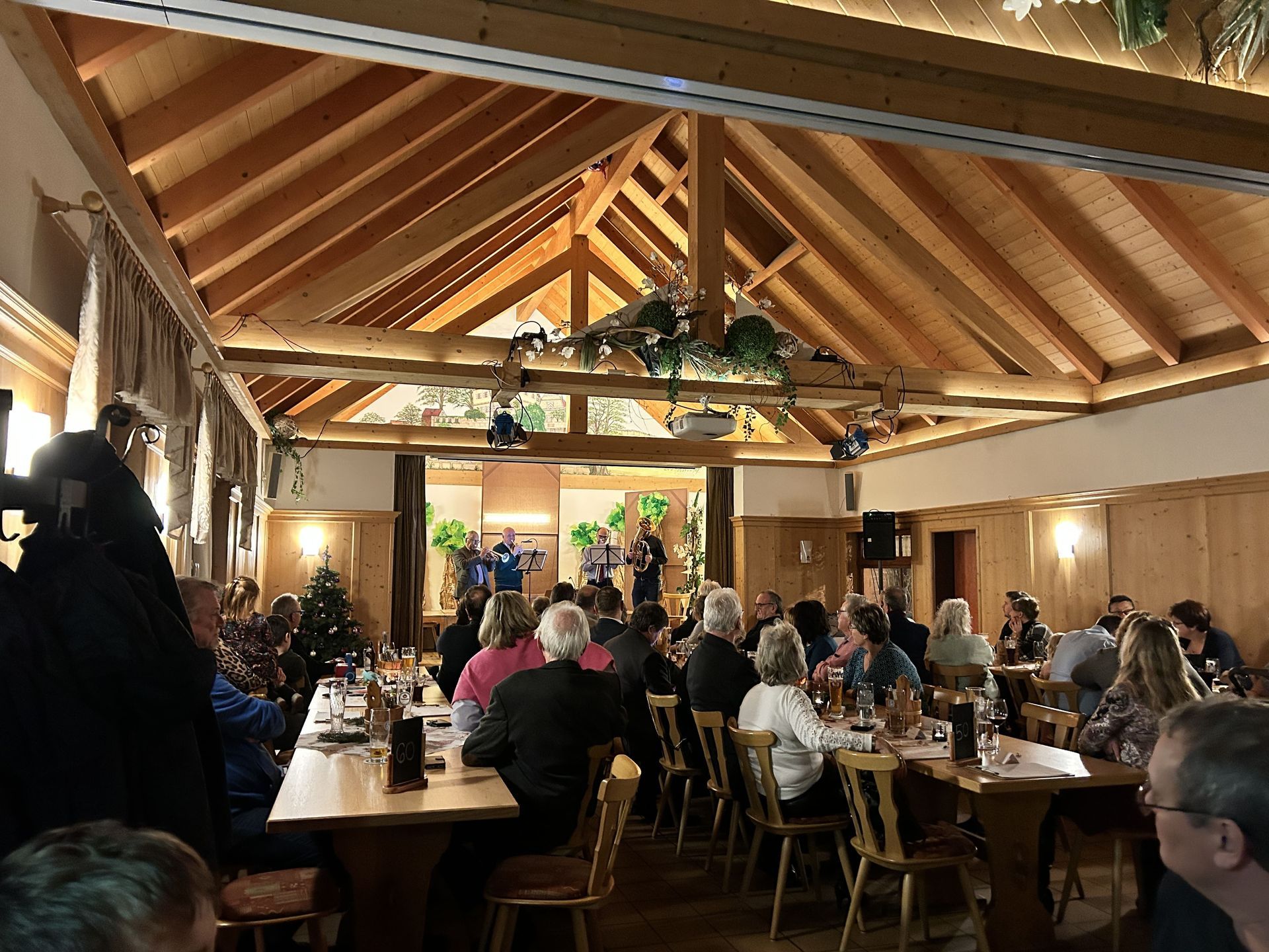 Auch 2024 fand traditionell die gemeinsame Weihnachtsfeier im Gasthaus "Zum Alten Forsthaus" in Neunhof statt. Neben dem gemütlichen Beisammensein konnten wir auch unserem Kollegen Christian Floth zum 25-jährigen Jubiläum als Mitglied der Straßenbahnerkapelle gratulieren. Die Urkunde wurde durch unseren Musikbetreuer Stefan Rupprecht sowie dem Betriebsrat der VAG und Stadtrat Konrad Schuh überreicht. Musikalisch umrahmt wurde die Weihnachtsfeier von einem Blechblas-Quartett aus Mitgliedern der Kapelle sowie einem Sängerquartett aus der Kollektiv "Sonat Vox". Vielen Dank an alle Musiker, Mitwirkende und Organisierende!